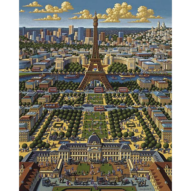 Paris. The Eiffel Tower takes center stage in this charming view of The City of Lights. This amazing piece of architecture was completed in 1889 for the Paris Exposition and was controversial at the time. However, nowadays Parisians consider the Eiffel Towe... - Paris. | | $28.99 More Information