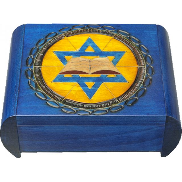 Star of David with Book - Secret Box. Star of David with Torah. A very elegant secret box with a simple but elegant solution. A contemporary angle on a timeless & classic art form, "Enchanted World Box Originals" are designed in the U.S.A, manufactured & imported from Poland.&nbs... - Star of David with Book - Secret Box. | | $47.99 More Information
