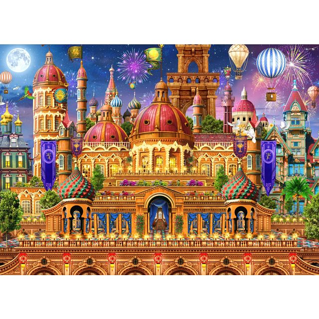 Castle Festival. Castle festival is an elegant art with a stunning view of a classic castle and many colorful fireworks and balloons floating in the background. This Brain Tree Games 1000 piece puzzle contains the following: puzzle poster, plastic zipper storage bag,... - Castle Festival. | | $24.99 More Information